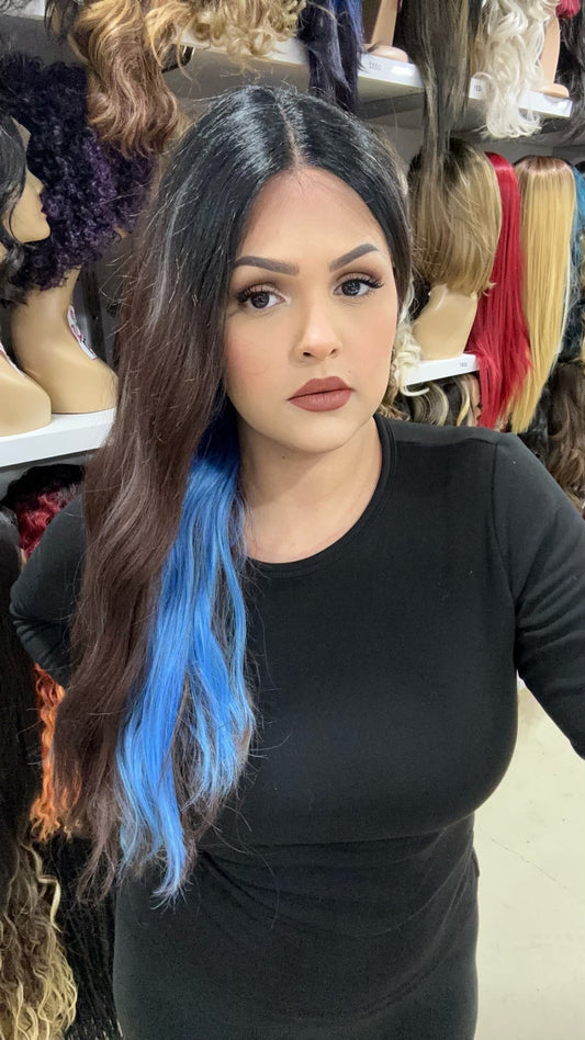 #67 Cammi - Deep Middle Part Lace Front Wig - Color Light Blue/Blue