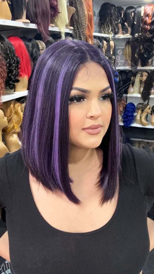 #55 Jess - Middle Part Lace Front Wig - Color Purple 14in