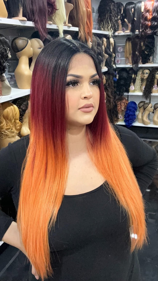#62 Pamela - Deep Middle Part Lace Front Wig - Color 1B/Red.Orange 26in