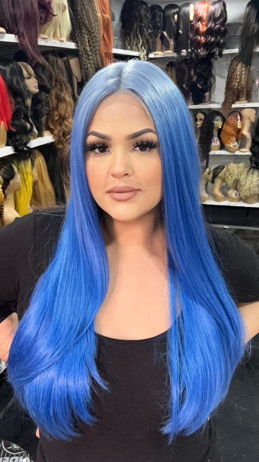 #67 Cammi - Deep Middle Part Lace Front Wig - Color Light Blue/Blue