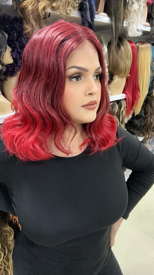 #69 Jade - Middle Part Lace Front Wig - Color 1B/Red 12in