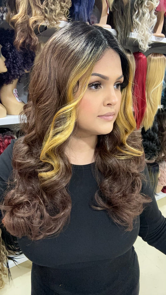 #51 Alexa- Middle Parting Lace Front Wig - Color Black with Highlights
