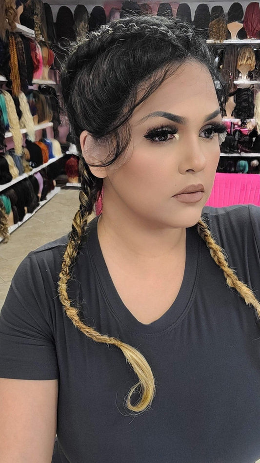 #90 Cici - Braided Middle Part Lace Front Wig - Color 1B/Honey.Blonde