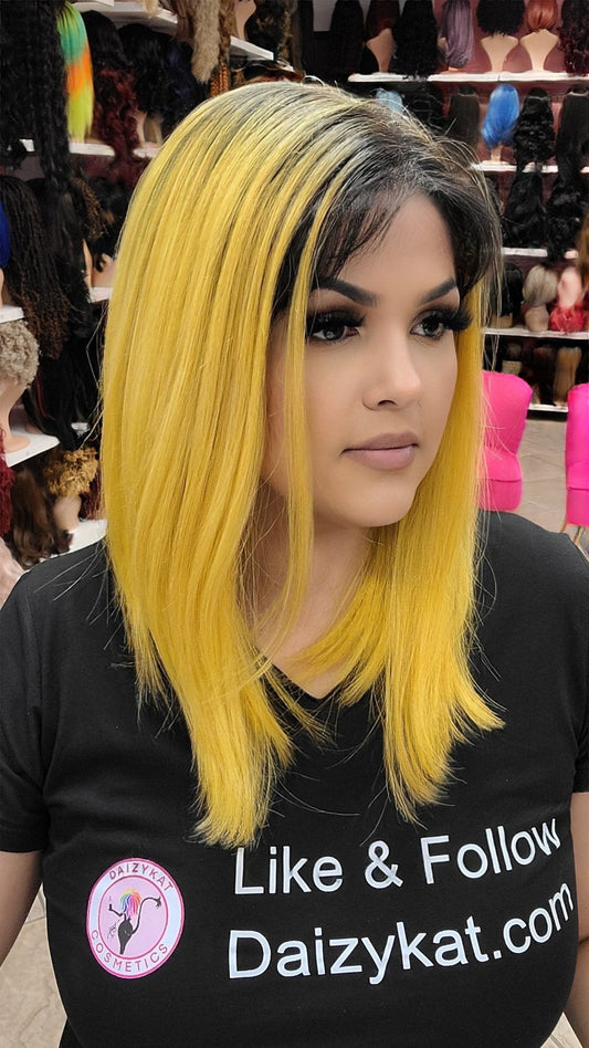 #64 Michelle - 13X7 Human Blend Lace Front Bob Wig - Color 4/Yellow